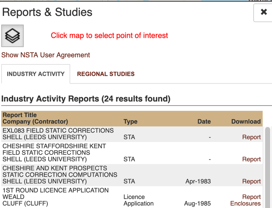 Reports are filed by seismic survey campaigns, which may cover several different licence areas, and can be accessed by clicking the Reports button on the website